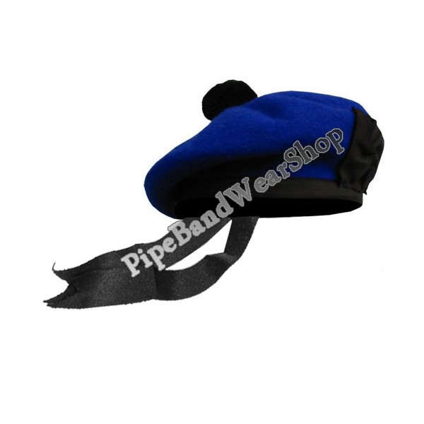 Scottish Balmoral bonnet royal blue pure 100% wool fully lined for comfort traditional construct with black toorie pom pom on top of the hat...