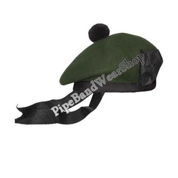 Scottish Balmoral bonnet green pure 100% wool fully lined for comfort traditional construct with green toorie pom pom on top of the hat.