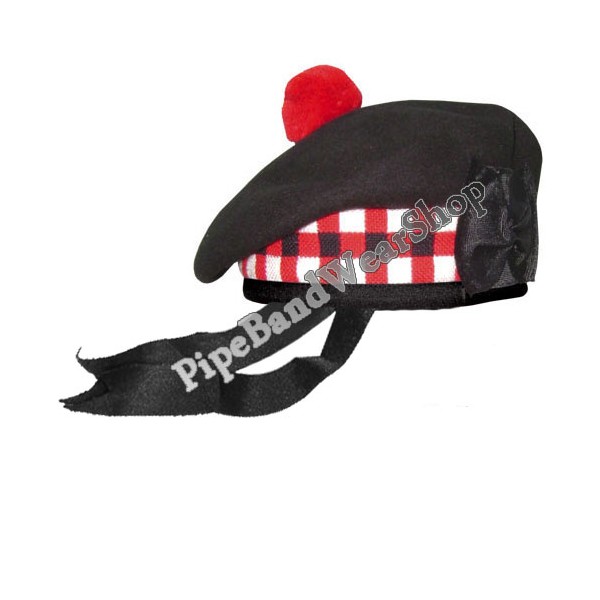 Black Wool Scottish Balmoral Black/White Dicing Bonnet