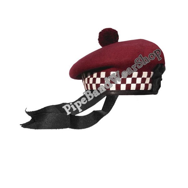 Maroon Wool Scottish Balmoral Maroon/White Dicing Bonnet