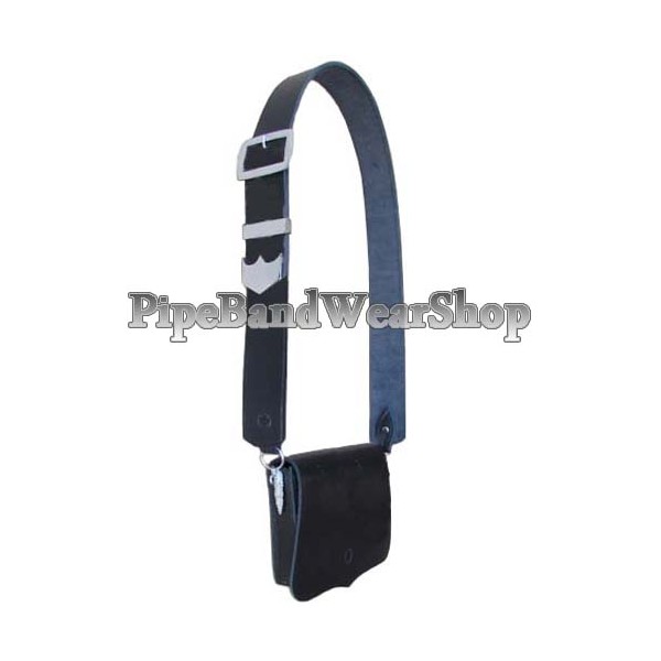 High quality black leather music card pouch fitted with cross belt chrome hardware mounts and pouch size 200mm x 150mm Aprox...