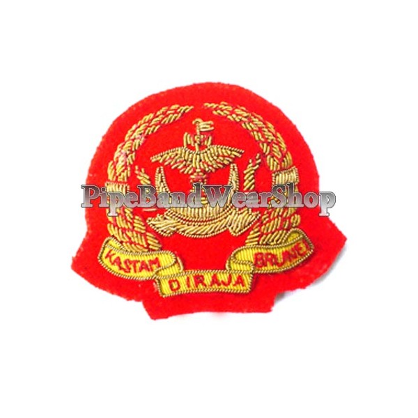 Gold embroidered badge made on the red blazer.