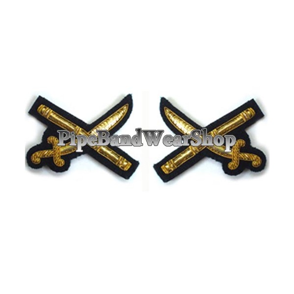 Gold embroidered sword badge made on the black blazer.
