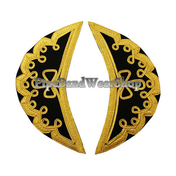 Traditional Doublet Shoulder Shell Black Wool Gold Scroll Trim.