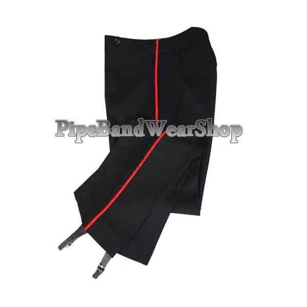 Black royal army medical corps officers mess dress trousers for above uniform made in military grade wool with 1/4" red stripe as per originals and leather strip chrome buckle...