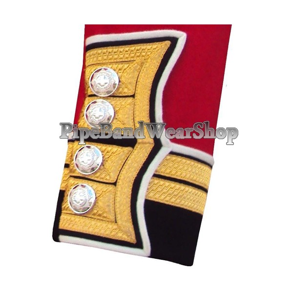 Red Melton 100% wool coldstream guard warrant officer tunic jacket with gold fancy braid on Cuffs, Shoulders, Backs and Collar, complete with Buttons and Inner Satin Lining.
