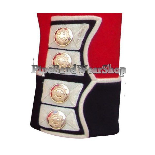 Red Melton 100% wool coldstream guard trooper tunic jacket with white/black piping on Cuffs, Shoulders, Backs and Collar, complete with Buttons and Inner Satin Lining.