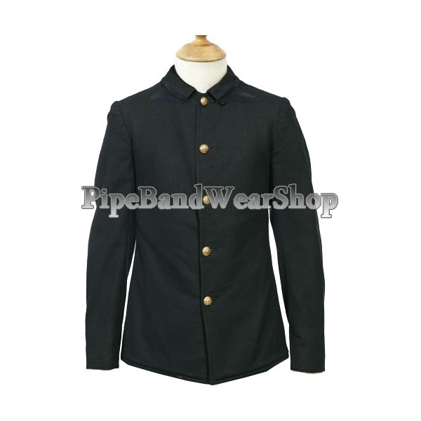 Military weight melton wool in dark blue with pointed collar fitted with hook and eyes. The lining is wool flannel and stitched in quilted fashion on the inside to provide a more 'fitted' appearance. Fitted with 5 standard GS buttons...
