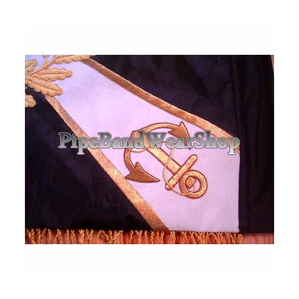 This is german banner measures approx. 23" x 23" ,including the fringe and pole sleeve and is made of a heavy cotton material. The embroidery and fringe are gold bullion.