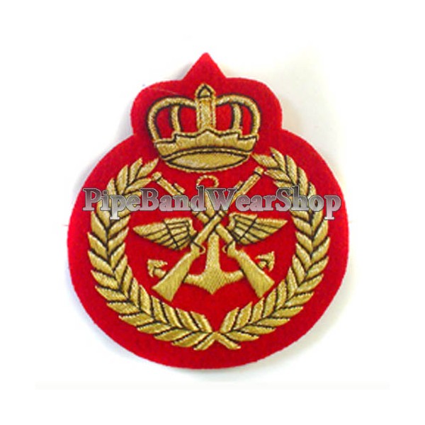 Gold embroidered badge made on the red blazer.