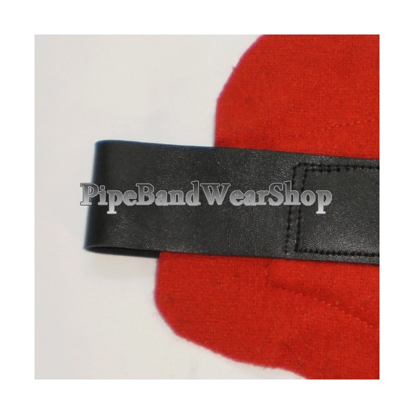Worn by Drummers to protect uniform trousers from wear. The adjusting tab (at the top) folds over a uniform belt and fastens to a stud on the front of the apron (the tab has 3 height adjusting positions). The straps at the bottom of the Apron go around the back of the left leg and fasten on the outside of the leg using the adjusting buckles provided. This Apron is only available in long length with 3 straps & buckles, but the bottom part can easily be trimmed off below the middle strap to shorten the length of the Apron.