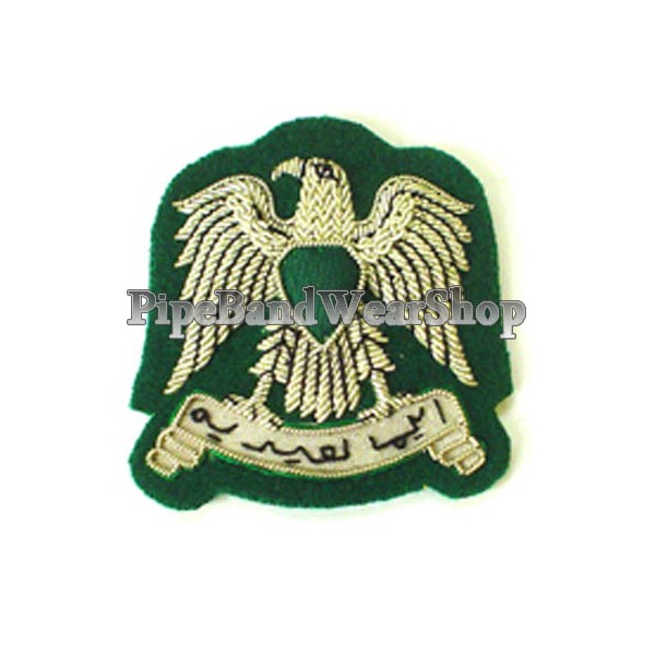 Silver embroidered badge made on the green blazer.