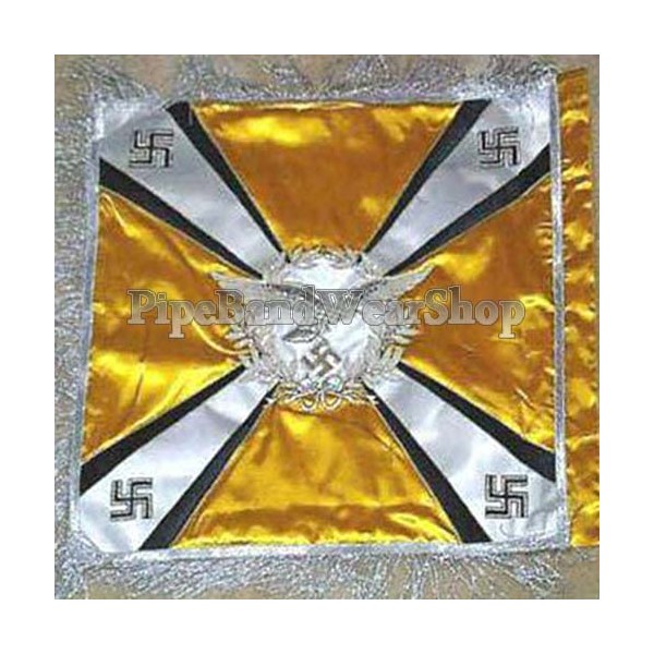 German war 2 Luftwaffe standard banner. The banner is approximately 18" high by 18" wide, which does not include the nearly 1.5" long twisted bullion fringe...
