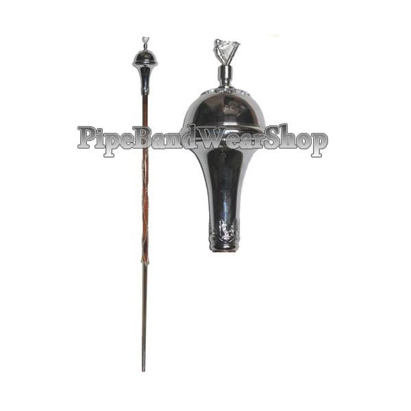 Pipe band drum major mace mallaca cane brown colour stick chrome chain with chrome plain head with irish harp on the top on head chrome long ferrule...