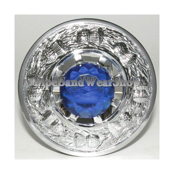 Chrome Scottish Emerald Stone Brooch thistle patten all around the brooch.