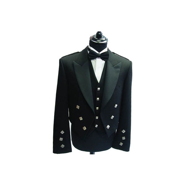 This traditional Scottish Dark Green Prince Charlie Scottish Kilt Jacket with vest nickel plated buttons, available in 100% wool.