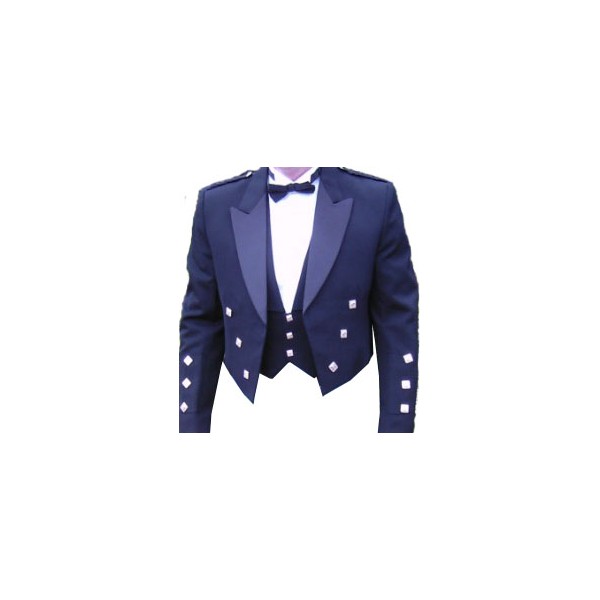 This traditional Scottish Royal Blue Prince Charlie Scottish Kilt Jacket with vest nickel plated buttons, available in 100% wool...