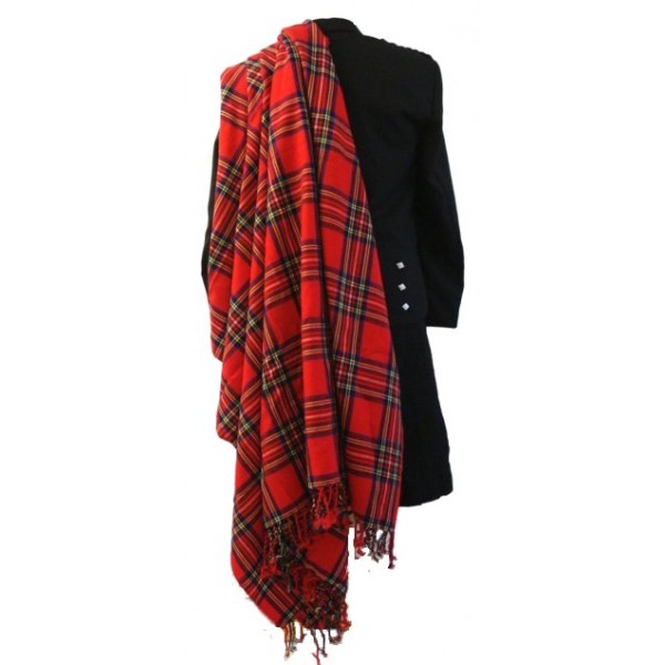 This is a full length plaid which consists of approximately three and a half yards of 54inch wide tartan (3.2 metres x 137cms) with the ends fringed. In Scotland this plaid is worn almost exclusively by pipers in Pipe Bands, either civilian or Regimental. It is very rarely worn by the individual as it is rather clumsy to wear.