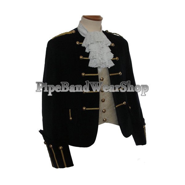 The Achara Black Kilt Doublet is a delightful old-fashioned jacket with gauntlet cuffs and a high-buttoned waistcoat. It is normally worn with lace jabot & cuffs. Alternatively some people wear a highland cravat which is less jacobean. We can offer this in 100% wool...