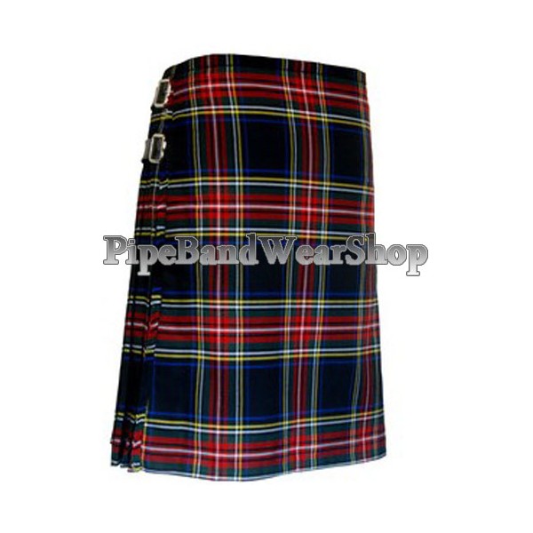 Black Stewert Scottish Traditional Tartan 8 Yard Kilt use fabric acrylic wool and length 24" showed as the belted plaid.