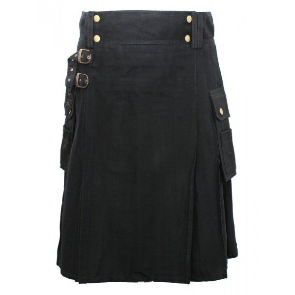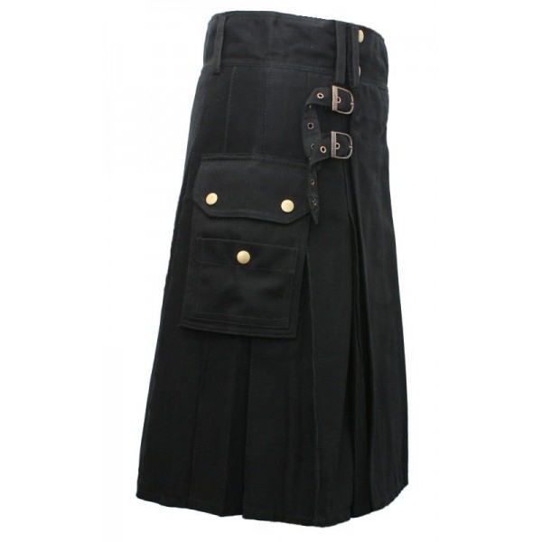 Black Utility Kilt with Detachable Pockets use fabric 100% cotton and length 24" showed as the belted plaid.