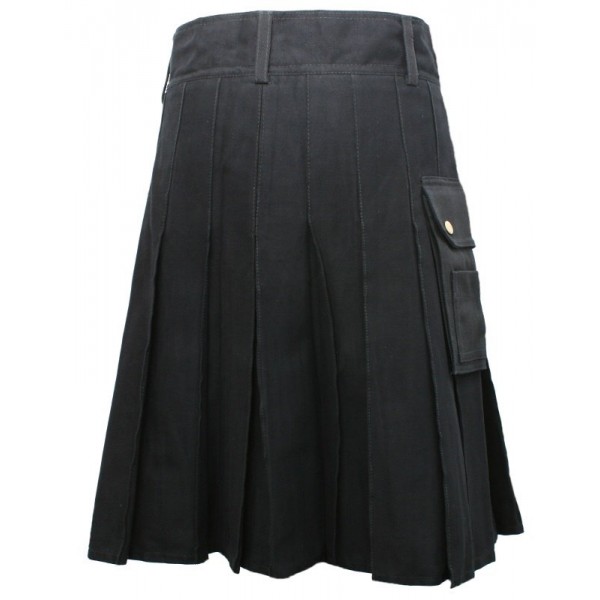 Black Utility Kilt with Detachable Pockets use fabric 100% cotton and length 24" showed as the belted plaid...