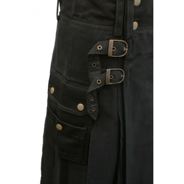 Black Utility Kilt with Detachable Pockets