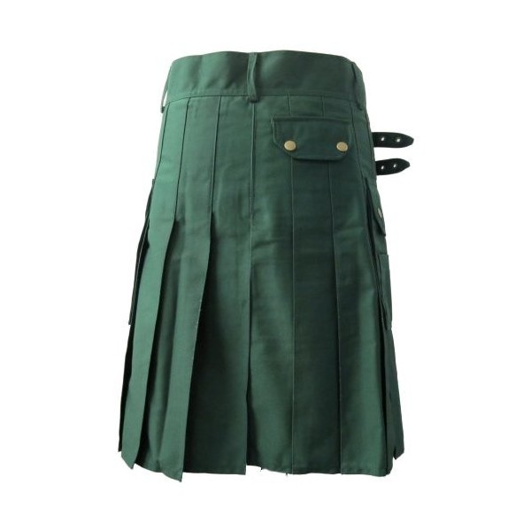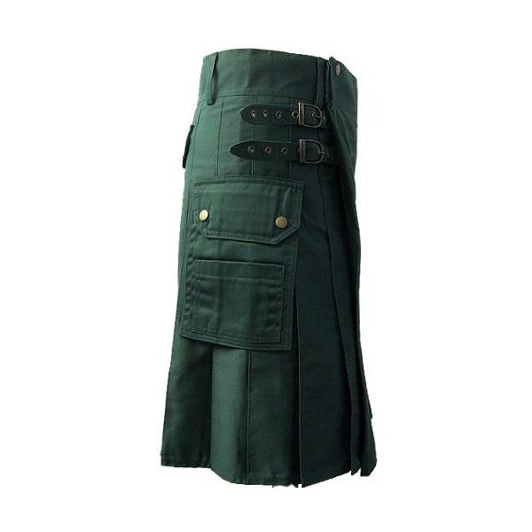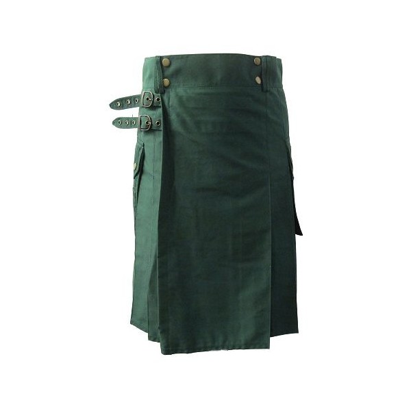 Green Utility Kilt with Detachable Pockets use fabric 100% cotton and length 24" showed as the belted plaid.