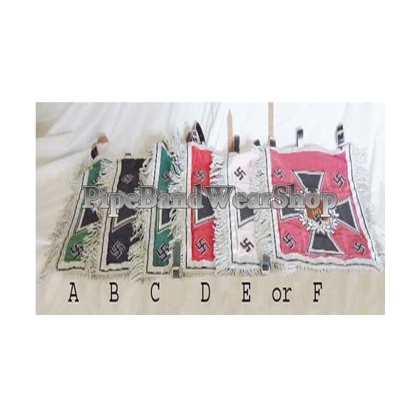 Trumpet banner nazi german army banner. It measures 16” x 16”, excluding the three-inch loops. Silk Material, Extensive Embroidery throughout with both Bullion & Cotton embroidery with silver fringe.