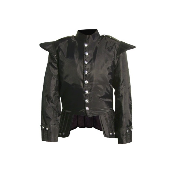 Wind and water resistant nylon Identical features of our wool doublets Black nylon body Black Trims 8 button front closure.