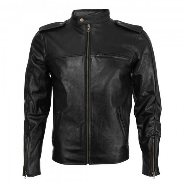 Distressed Black Cafe Racer Leather Jacket - Brad
